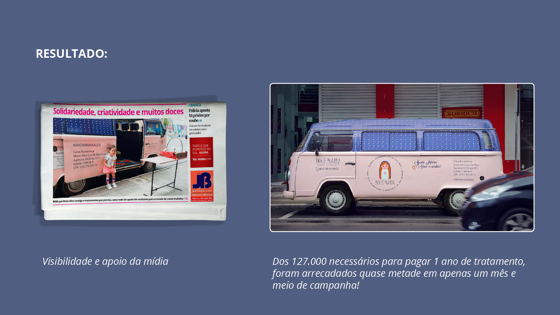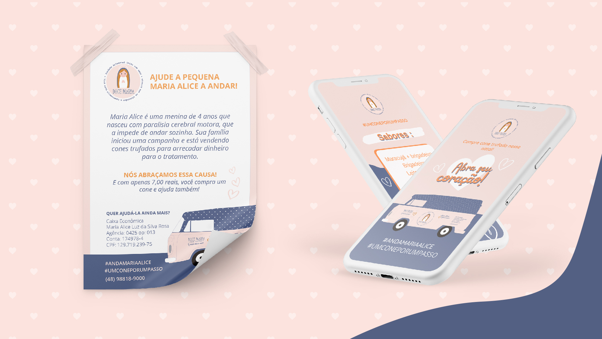 Participamos de forma voluntária da campanha “Anda Maria Alice”, destinada a suprir financeiramente a menina Maria Alice acometida de paralisia cerebral motora. Fizemos o Design para várias aplicações da campanha como: Plotagem de veiculo, logomarca, postagem para rede sociais e muito mais.